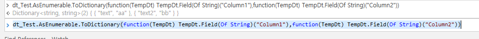 1~2줄로 'DataTable => Enumerable => Dictionary' 이걸 하려고 했다.