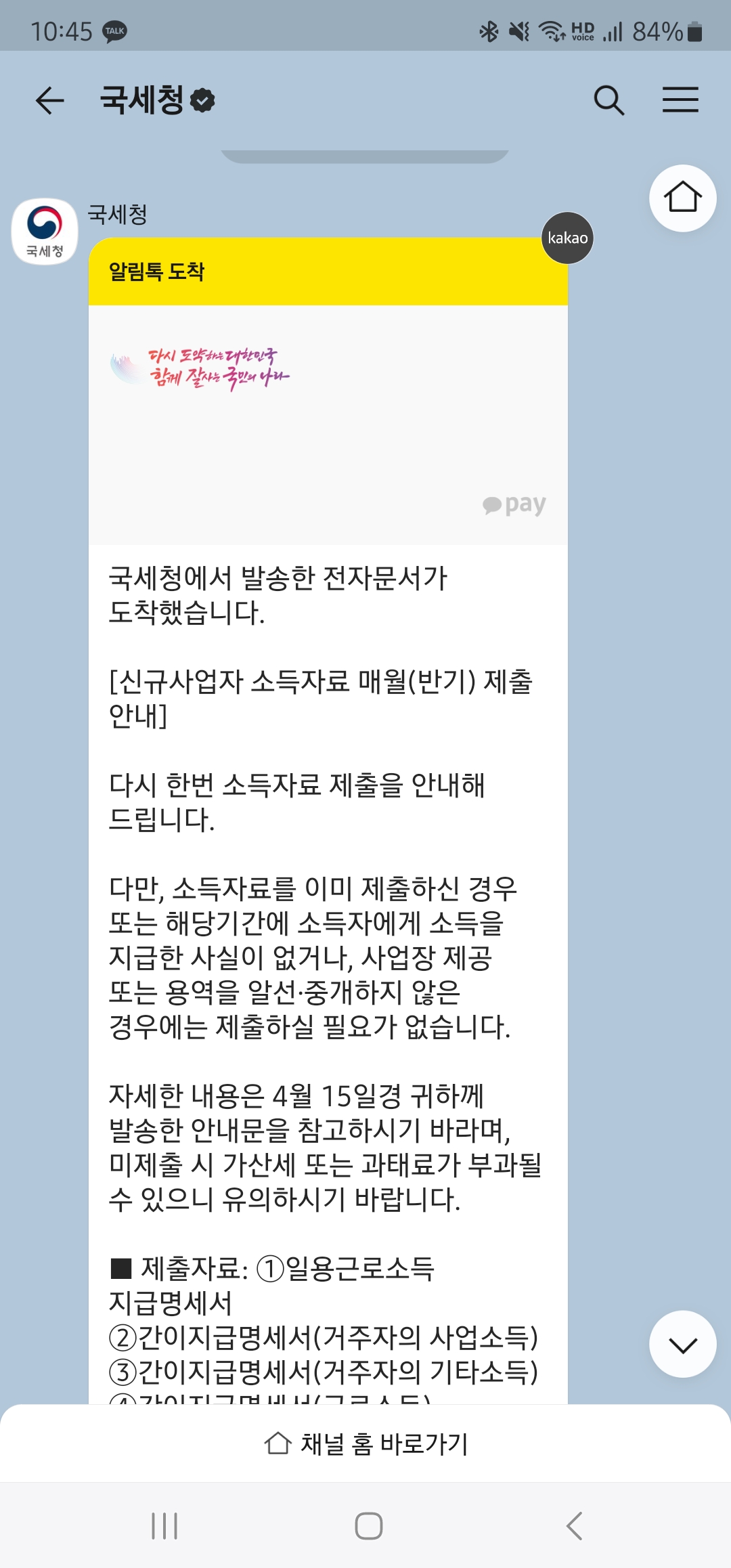 국세청에서 아래와 같이 알림톡을 보내서 뭘해야하는지 자료를 찾아보았다